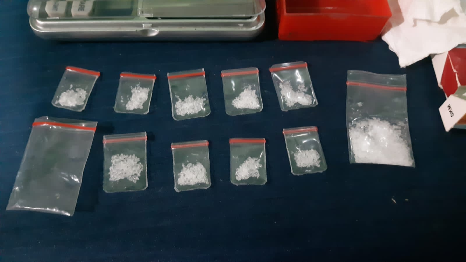 Polisi melakukan penyelidikan setelah menerima laporan dari warga dan berhasil menyita sejumlah barang bukti termasuk 10 sachet plastik bening berisi shabu seberat 2,06 gram, 1 buah alat timbang digital, 1 buah HP merek Redmi, dan berbagai barang lainnya.