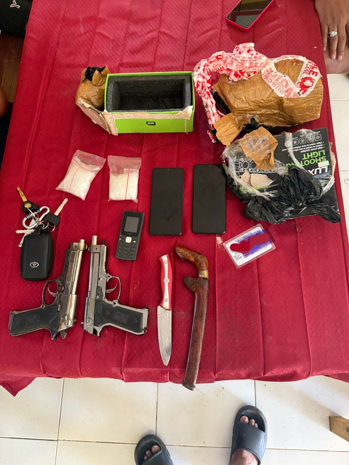 Dalam penangkapan ini, polisi menyita sejumlah barang bukti, antara lain: Dua paket sabu dengan berat total 96 gram, Uang tunai sebesar Rp1.950.000, Tiga unit telepon genggam (Nokia, Realme, Infinix), Dua korek api berbentuk pistol, Satu bilah badik/pisau dan Satu unit mobil Toyota Avanza hitam