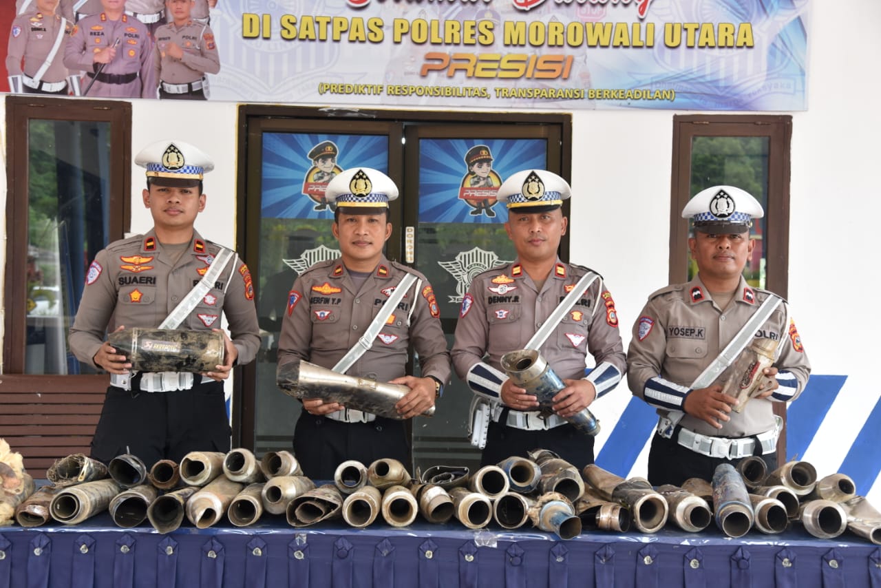 “Menindaklanjuti keluhan masyarakat yang tinggi terhadap pengendara berknalpot brong, kami dari Satlantas Polres Morowali Utara melaksanakan razia dan memberikan sanksi tegas berupa tilang serta mengamankan barang bukti,” jelas Ipda Gerfin.