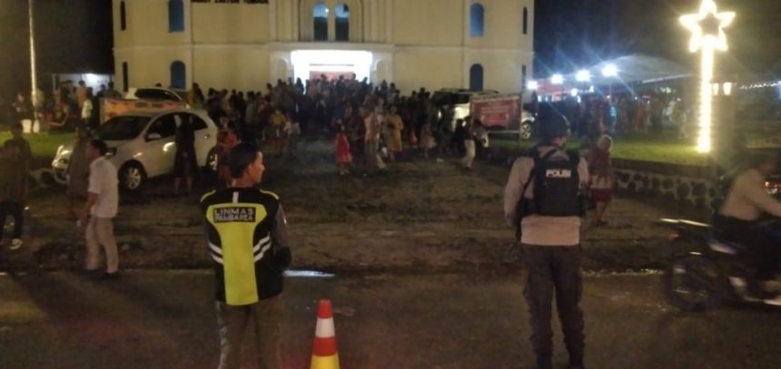 OBORMOTINDOK.CO.ID, MORUT- Polres Morowali Utara (Morut) dan jajarannya melakukan pengamanan ibadah malam Natal di seluruh gereja yang tersebar di wilayah Kabupaten Morowali Utara, Minggu (24/12/2023).