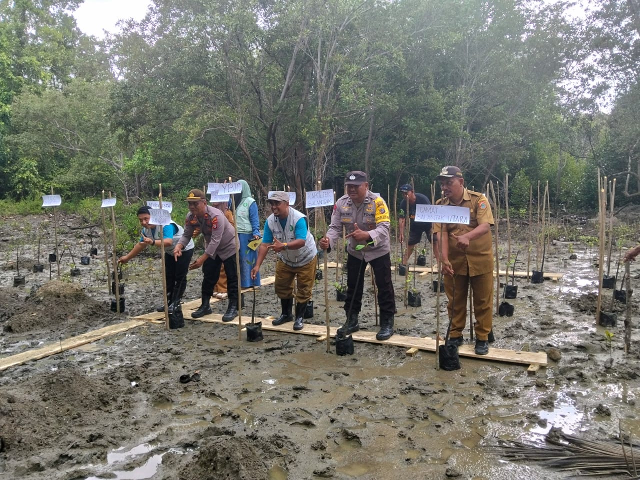 OBORMOTINDOK.CO.ID. Banggai— Polsek Balantak menjalin kolaborasi dengan Yayasan Banggai Insan Cita (YBIC) melalui kegiatan penanaman sebanyak 1.500 bibit pohon mangrove di Desa Pangkalaseang, Kecamatan Balantak Utara, Kabupaten Banggai, pada Senin (22/12/2025) pagi.