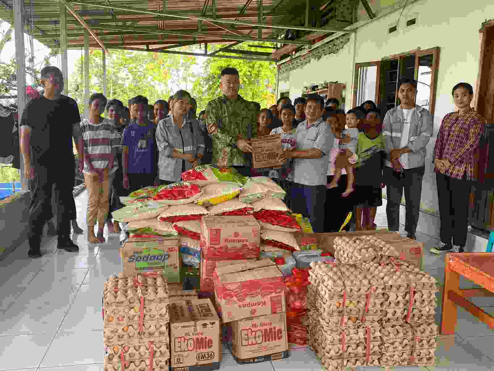 Total bantuan yang disalurkan berupa 1,2 ton beras serta bahan makanan lainnya seperti telur, minyak goreng, mie instan, biskuit, dan daging olahan.