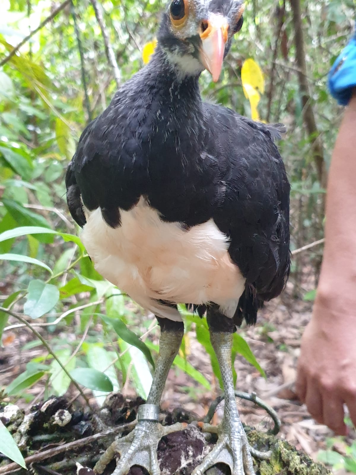 Anakan burung Maleo yang dilepas ini dipasangi cincin berwarna silver sebagai penanda bahwa burung itu dilepas oleh manajemen PT PAU dan alasan lainnya.