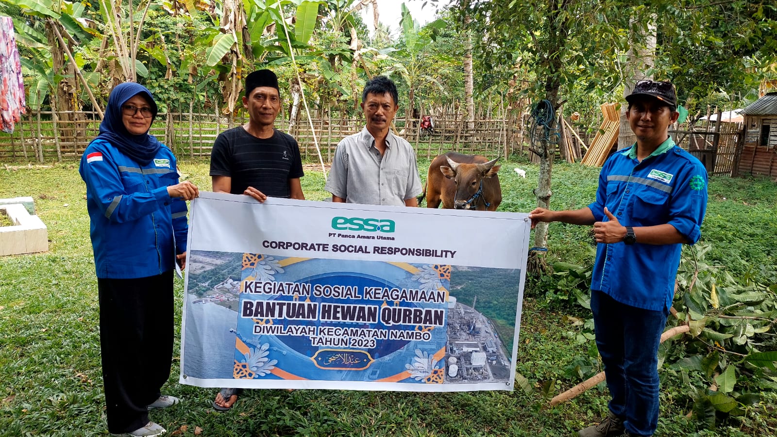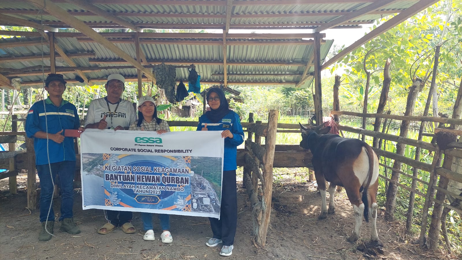 OBORMOTINDOK.CO.ID. KINTOM- Momen Hari Raya Idul Adha 1444 Hijriyah tahun 2023, Manajemen PT Panca Amara Utama (PAU) menyalurkan bantuan sebanyak 10 ekor sapi kurban.