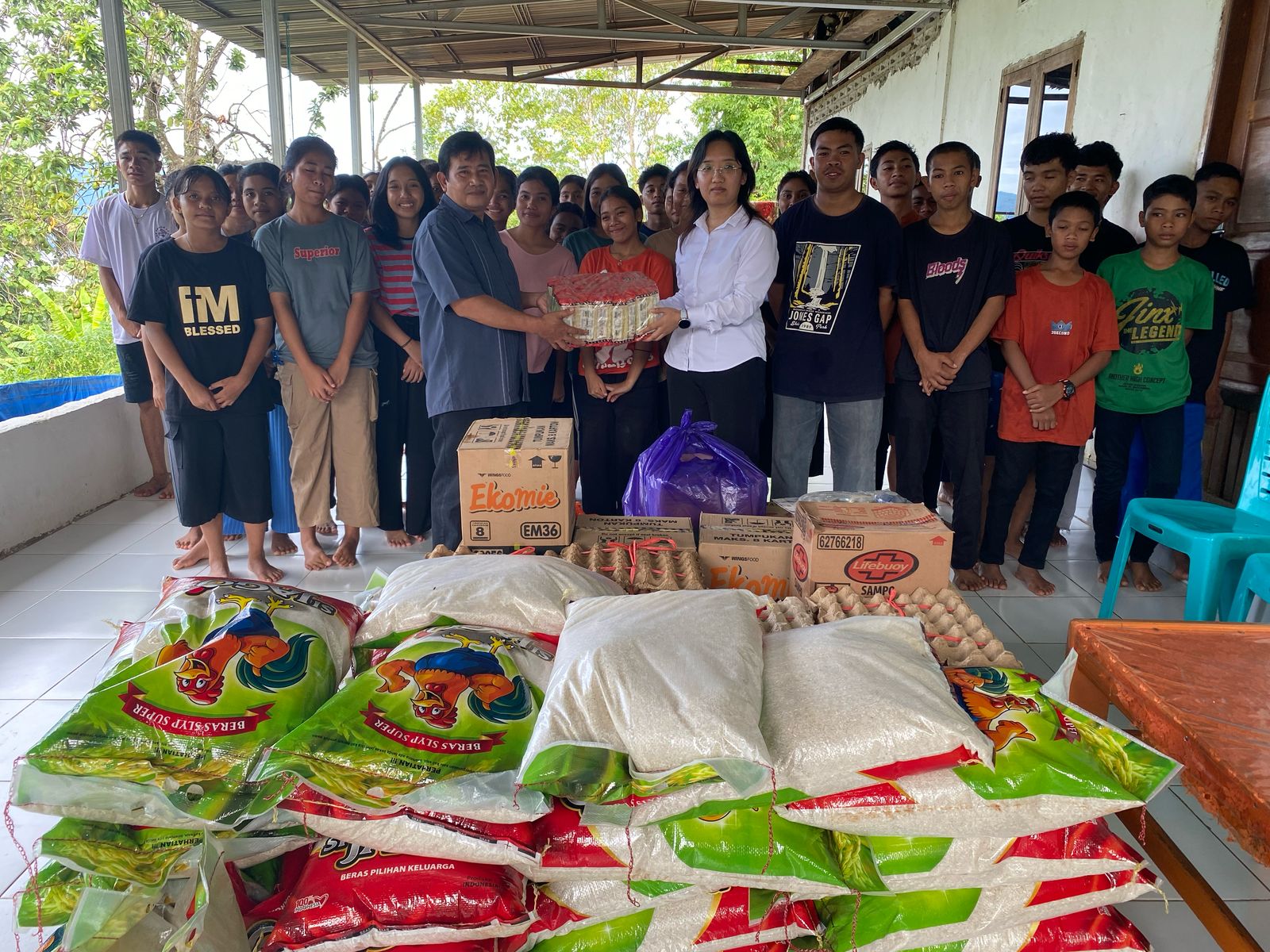 Adapun bantuan yang diberikan meliputi beras sekitar 1,2 ton, telur, susu, bawang merah, bawang putih, perlengkapan mandi, serta berbagai kebutuhan lainnya.
