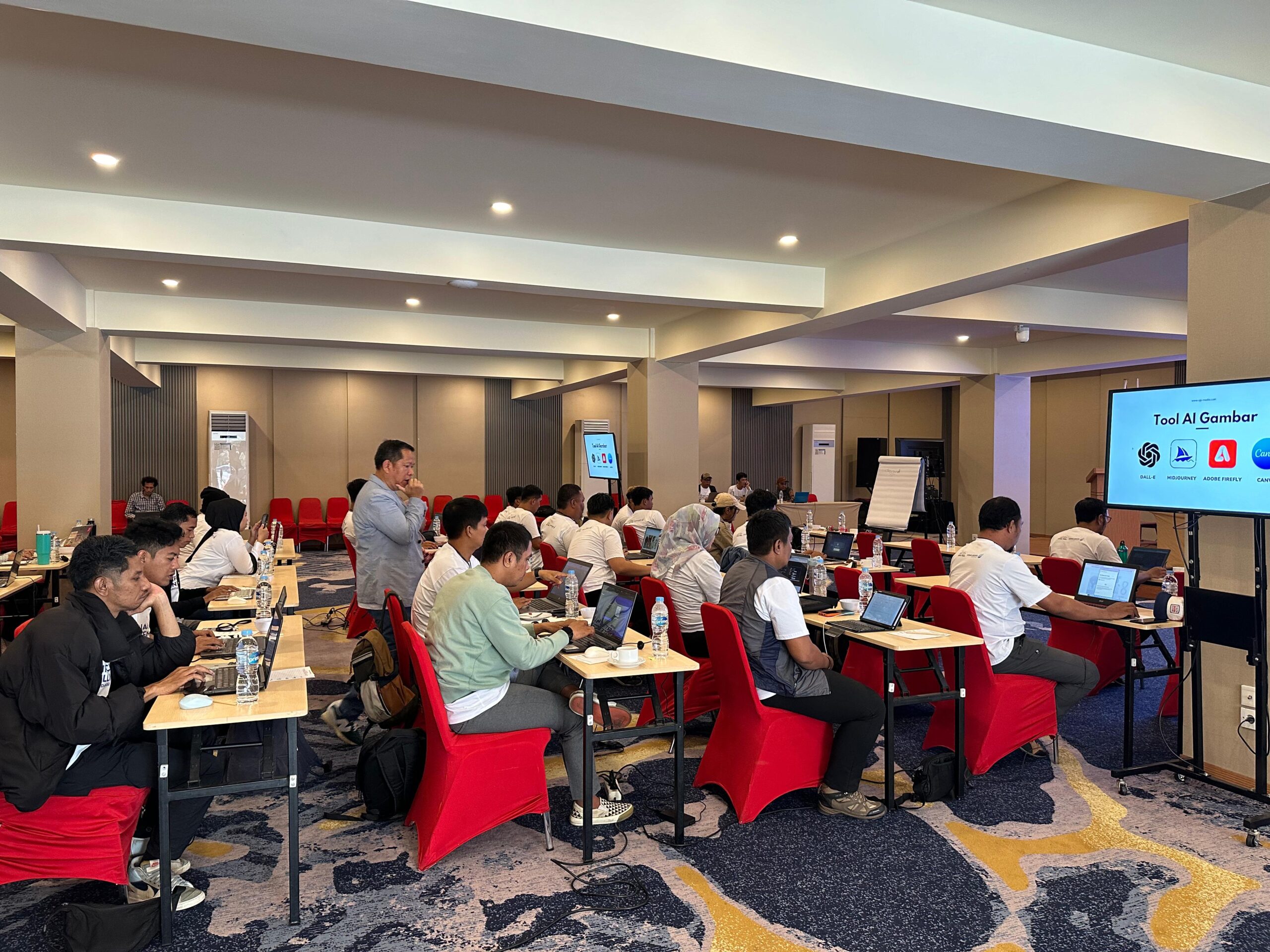 Salah satu fokus utama dalam pelatihan ini adalah bagaimana mengoptimalkan teknologi AI untuk mengubah gambar statis menjadi visual bergerak, serta memanfaatkan generator teks, suara, musik, hingga video.