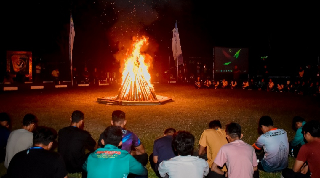 OBORMOTINDOK.CO.ID. Palu– Dalam suasana hening malam, kobaran api unggun menyala terang menemani para atlet Pusat Latihan Daerah (Puslatda) Sulawesi Tengah di Lapangan Markas Yonif 711 Raksatama.