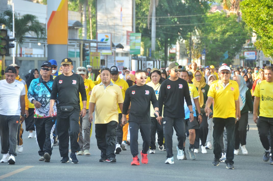 Rute jalan santai menutup perjalanan di Dermaga Pinasa Luwuk, Seluruh peserta menyatu dalam pelaksanaan Senam Kesegaran Jasmani (SKJ) Bersama Bupati Banggai.