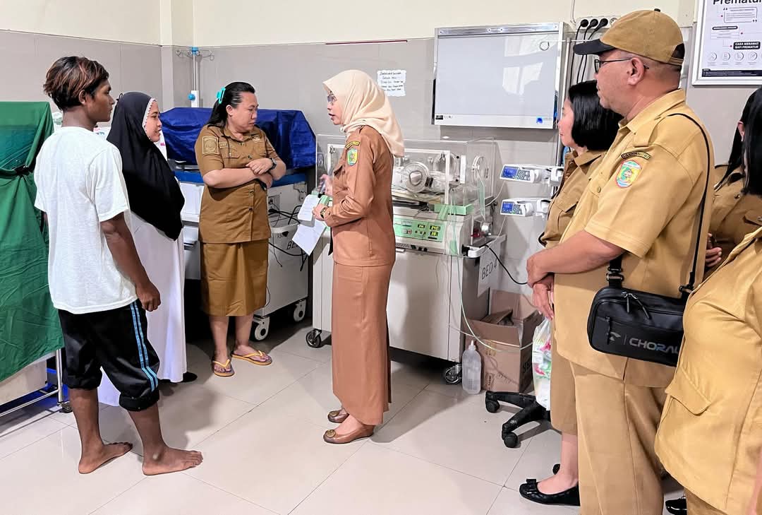 OBORMOTINDOK.CO,ID. Morut— Direktur RSUD Kolonodale, Kabupaten Morowali Utara (Morut), dr. Sherly Pede, M.Kes., bersama sejumlah pejabat struktural rumah sakit, melakukan kunjungan kemanusiaan kepada seorang bayi dari keluarga kurang mampu yang tengah dirawat di ruang perinatologi RSUD Kolonodale.