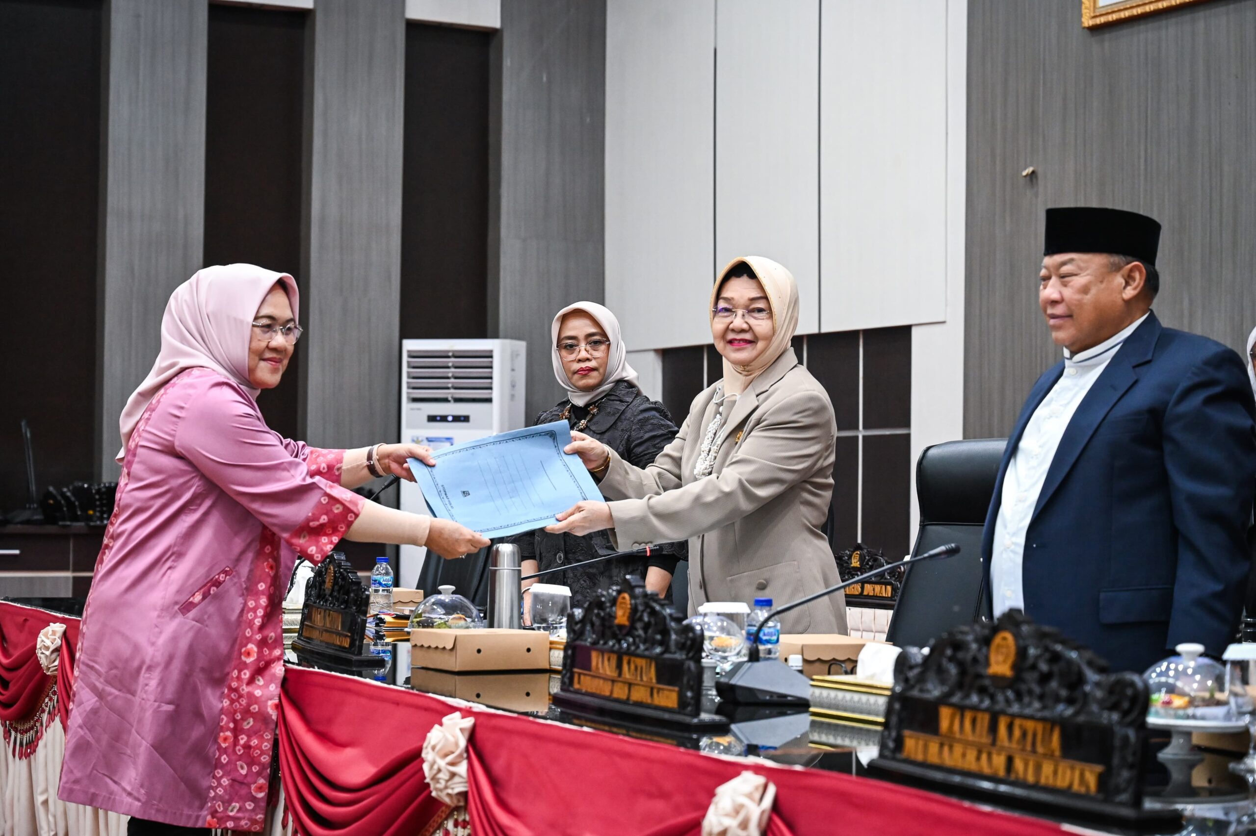 Penandatanganan Naskah Berita Acara Persetujuan Bersama dilakukan oleh Sekda Novalina Wismadewa mewakili Gubernur, dan Wakil Ketua I DPRD Provinsi Sulteng, Mohammad Arus Abdul Karim.