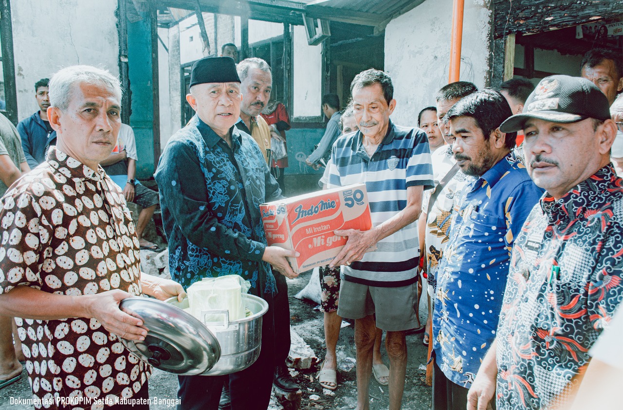 Pada kesempatan tersebut Wabup menyerahkan secara simbolis bantuan dari Pemerintah Kabupaten Banggai. Bantuan tersebut berupa logistik dan bahan makanan serta sejumlah peralatan dapur dan perlengkapan lainnya yang diambil dari Gudang Logistik Dinas Sosial Kabupaten Banggai, serta alokasi dari APBD dan beberapa perlengkapan lainnya yang bersumber dari APBN-PSKBA Kementerian Sosial RI.
