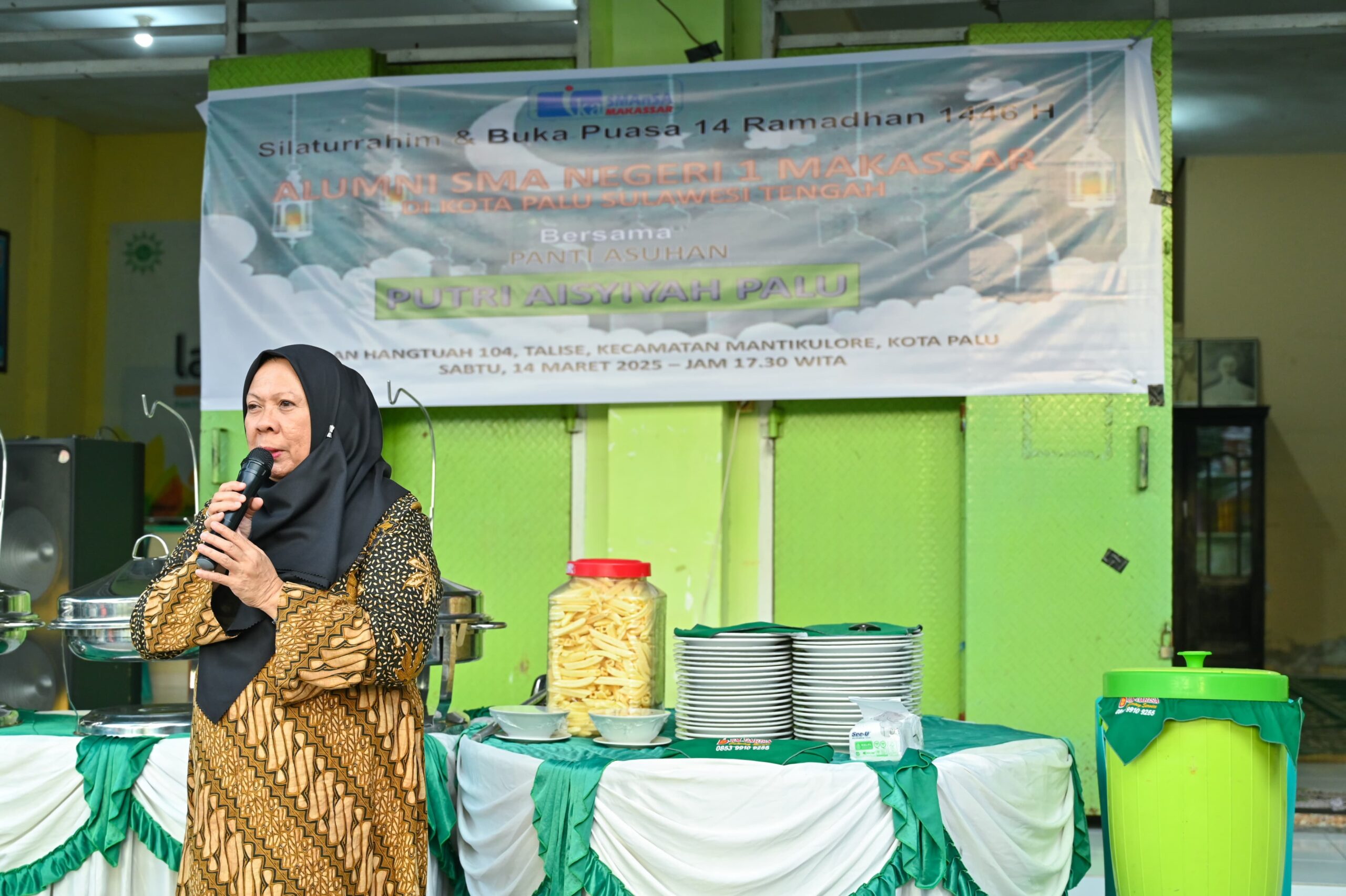 OBORMOTINDOK.CO.ID. Palu– Wakil Gubernur Sulawesi Tengah, (Sulteng), dr. Reny A. Lamdjido, Sp.PK, M.Kes, menghadiri acara silaturahmi dan buka puasa bersama yang diselenggarakan oleh Alumni SMA Negeri 1 Makassar bersama anak-anak dari Panti Asuhan Putri Aisyiyah Palu, pada Sabtu (14/03/2025).