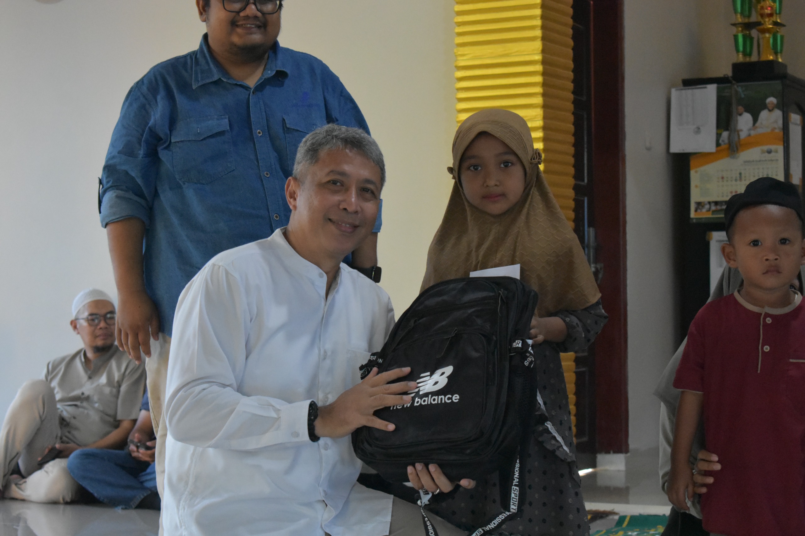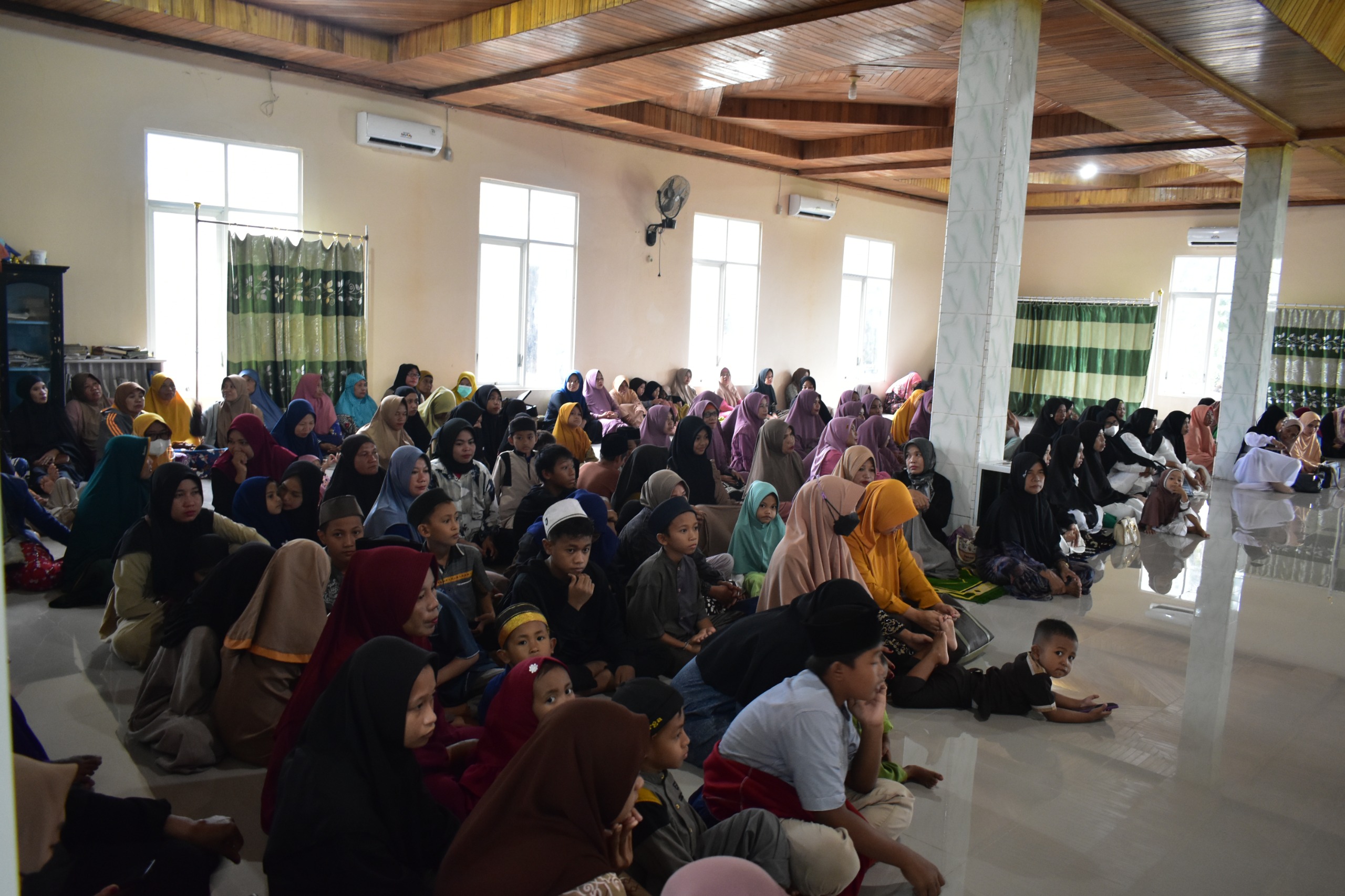 Penyerahan santunan kepada ratusan anak yatim jelang berbuka puasa. Usai penyerahan bantuan dilanjutkan dengan mendengarkan tausiah, berbuka puasa dan Salat Magrib berjamaah.