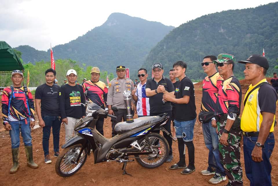 Kejuaraan Motocross Bupati Cup ini dibuka oleh Bupati Morowali Utara Delis Julkarson Hehi pada hari Jumat 9 Juni 2023.(teguh).