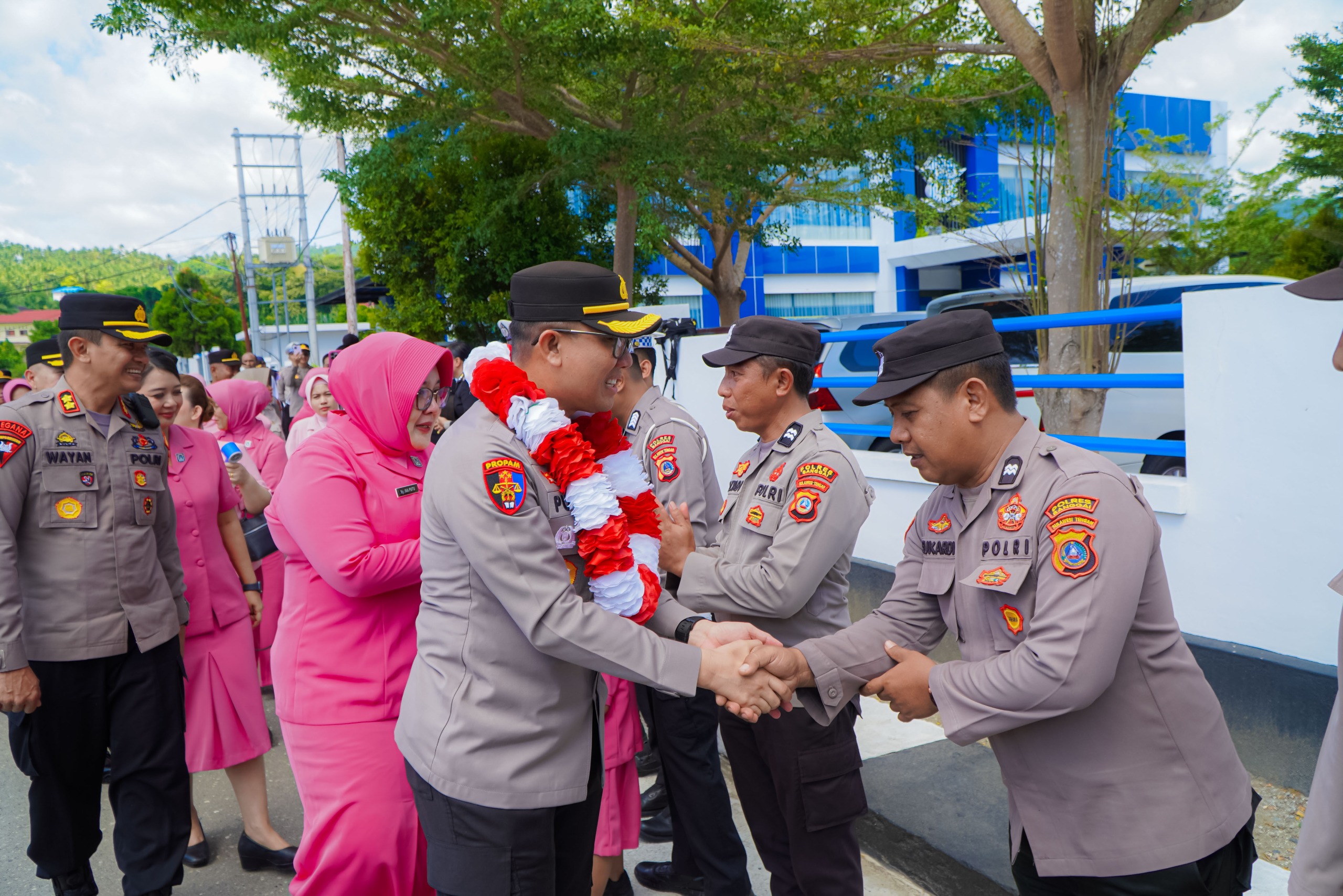 OBORMOTINDOK.CO.ID,- Polres Banggai menggelar tradisi penyambutan Kapolres Banggai baru AKBP Wayan Wayracana Aryawan, SIK, bersama Ketua Bhayangkari Cabang Banggai Ny. Made Wayan di Mapolres Banggai, Sabtu (10/1/2026).
