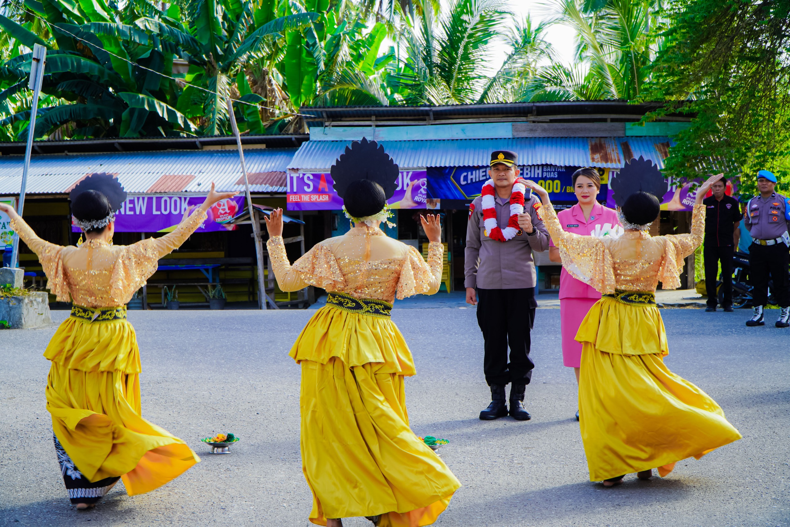 Kedatangan AKBP Wayan ini disambut dengan tarian molabot yang merupakan tarian menyambutan yang diangkat dari inti gerak tiga etnis (suku) yang ada di Kabupaten Banggai, yaitu Saluan, Banggai dan Balantak, yang kemudian dirangkum menjadi tari pergaulan.
