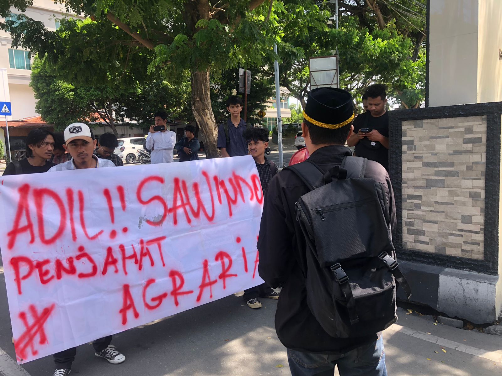 “ADILI PT SAWINDO, PENJAHAT AGRARIA!” seru Aulia Hakim dalam orasinya.