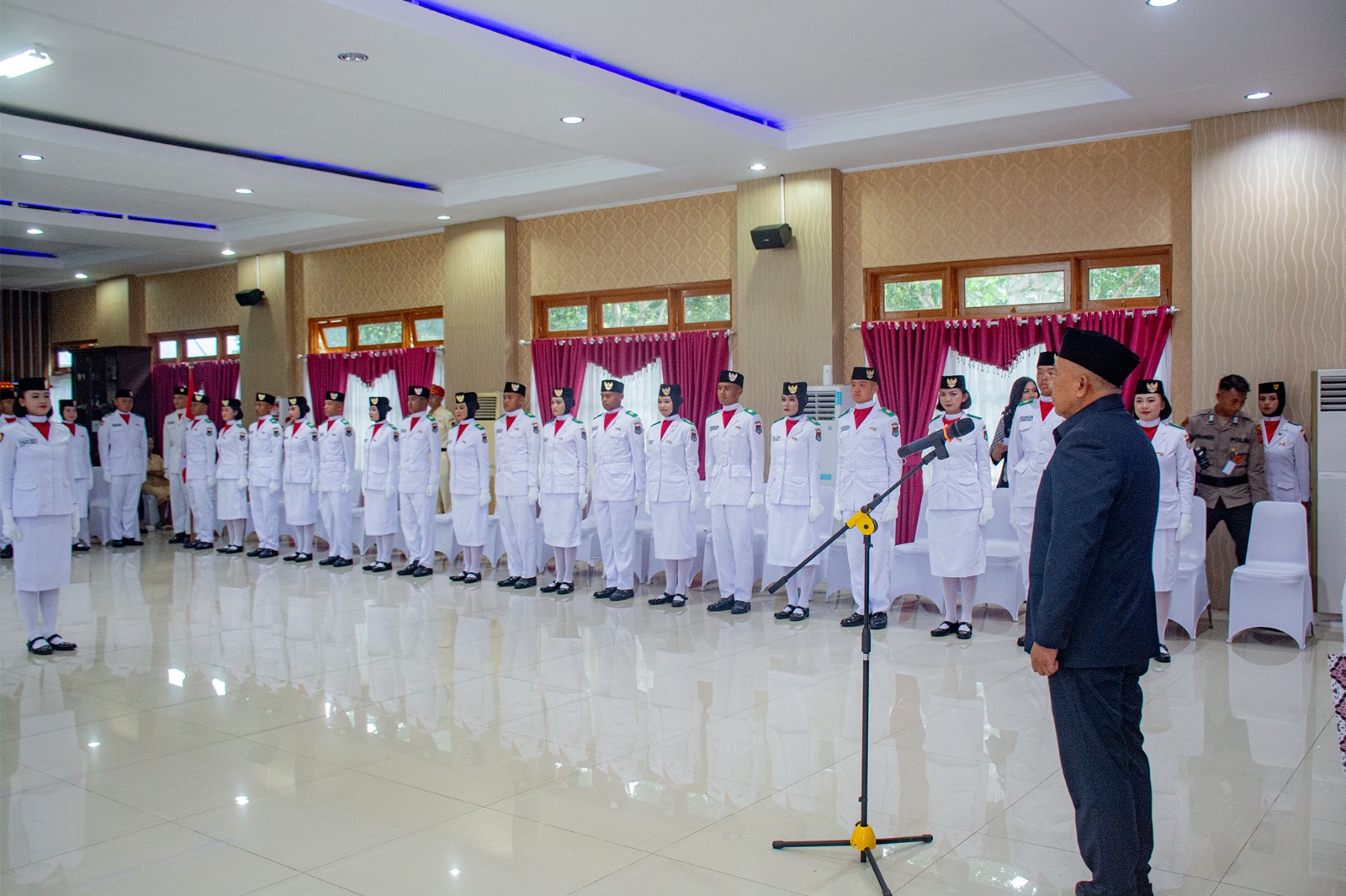 Bupati Banggai dalam sambutan tertulisnya, yang dibacakan oleh Wakil Bupati Banggai H. Furqanuddin menyampaikan agar anggota Paskibraka dapat mempertanggungjawabkan kehormatan yang diberikan.