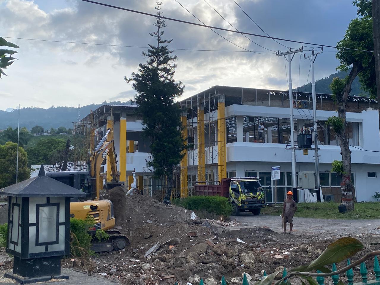 Kepala Bidang PBIP Dinas PUPR Banggai, Ir. I Putu Jati Arsana, ST.,MT, mengakui, pihaknya melakukan penatan halaman Mall Pelayanan Publik dari belakang hingga depan kantor eks Bupati Banggai.