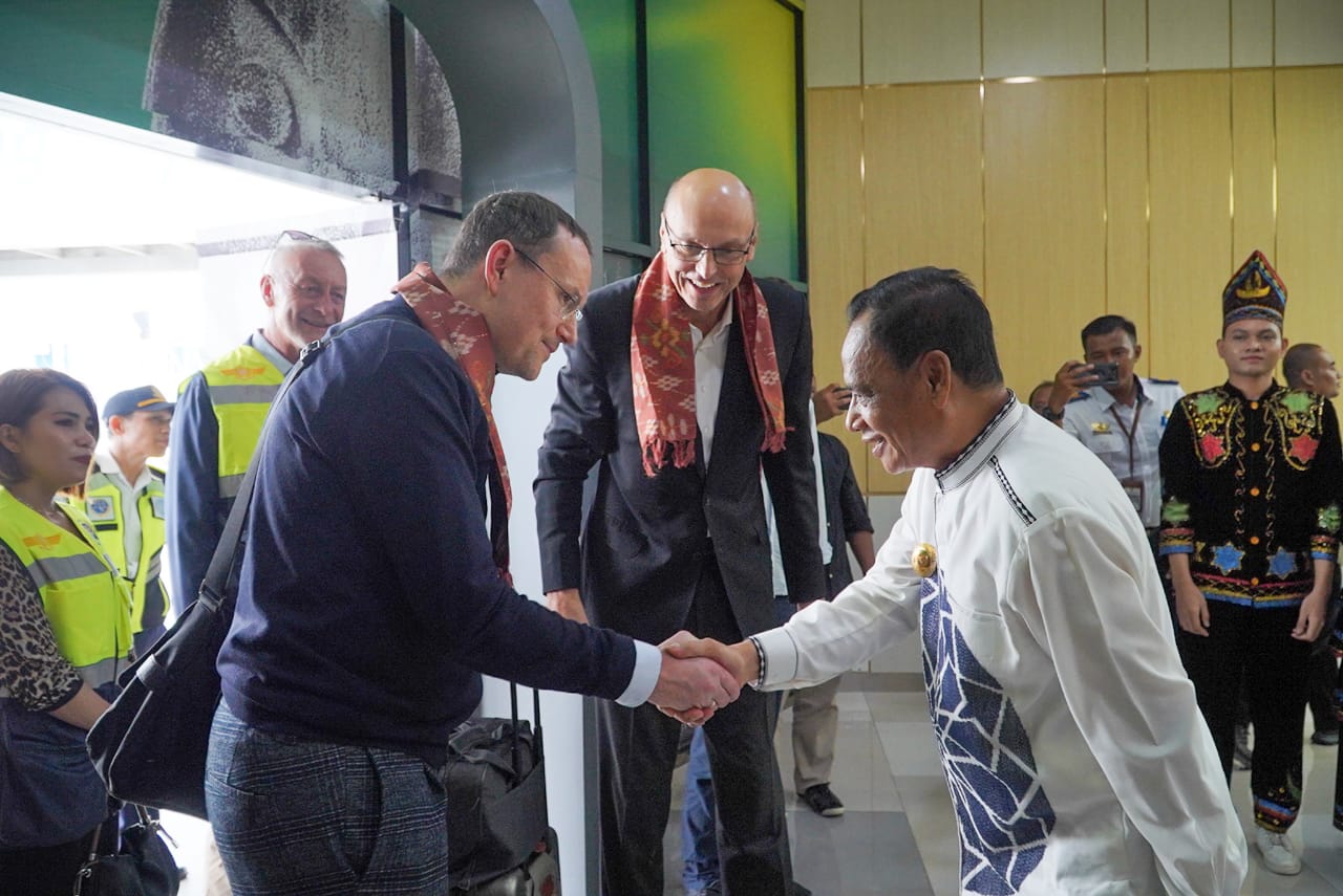 OBORMOTINDOK.CO.ID. Palu– Wakil Gubernur Ma’mun Amir menyambut kedatangan Duta Besar (Dubes) Republik Ceko, Jaroslav Dolecek, beserta rombongan di Ruang VIP Bandara Mutiara Sis Al-Jufri Palu pada Jumat (8/3/2024).