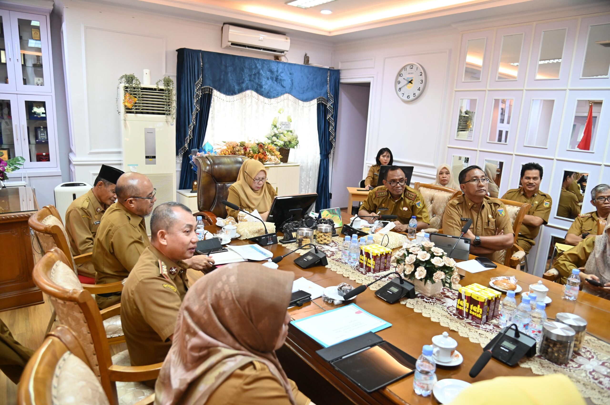 OBORMOTINDOK.CO.ID. Palu- Wakil Gubernur Sulawesi Tengah memimpin rapat pengendalian inflasi daerah bersama jajaran Organisasi Perangkat Daerah (OPD) terkait, yang digelar di ruang kerjanya, Senin, 11 Agustus 2025. Rapat ini juga terhubung secara virtual melalui Zoom Meeting dengan Kementerian Dalam Negeri RI, yang langsung dipimpin oleh Menteri Dalam Negeri dalam agenda evaluasi rutin pengendalian inflasi di seluruh daerah Indonesia.