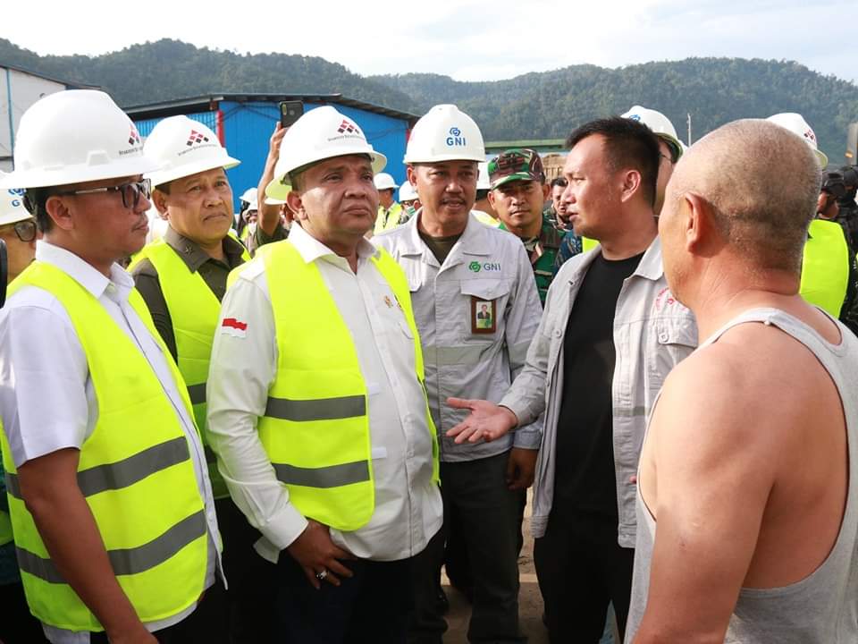 Setelah melakukan pertemuan tertutup dengan manajemen PT.GNI, Wakil Kemenaker melihat dari dekat lokasi kerusuhan serta berdialog dengan sejumlah TKI dan TKA asal China.