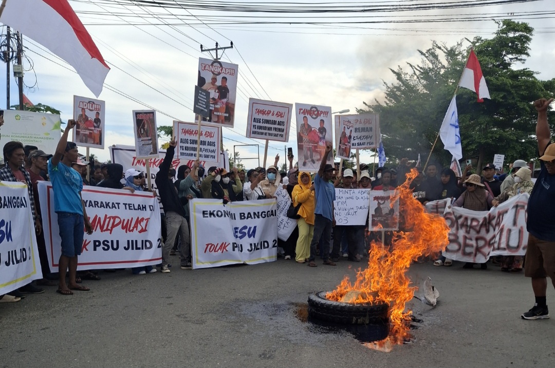 Dalam orasinya, warga menyatakan bahwa momentum Pilkada dan PSU yang semestinya menjadi ajang melahirkan kepemimpinan baru justru ternodai oleh tindakan-tindakan yang tidak demokratis.