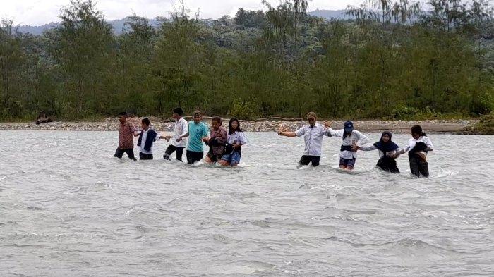 “Sudah lama kami dengar kabar akan dibuatkan jembatan, tapi sampai sekarang belum ada wujudnya. Kami hanya berharap, walau jembatan kecil sekalipun, bisa dibangun agar anak-anak bisa sekolah dengan aman,” tambahnya.