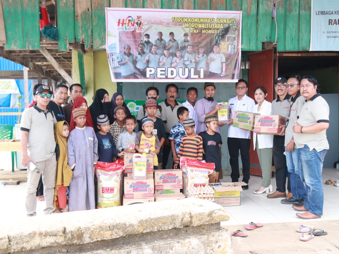 OBORMOTINDOK.CO.ID. Morut– Dalam rangka memperingati Hari Pers Nasional (HPN) Tahun 2023, sejumlah wartawan yang tergabung dalam Forum Jurnalis Morowali Utara (FKJ) melaksanakan bakti sosial berupa pemberian sembako untuk anak yatim piatu di Panti Asuhan Raudhatul Fitrah, Kolonodale, Kabupaten Morowali Utara (Morut).